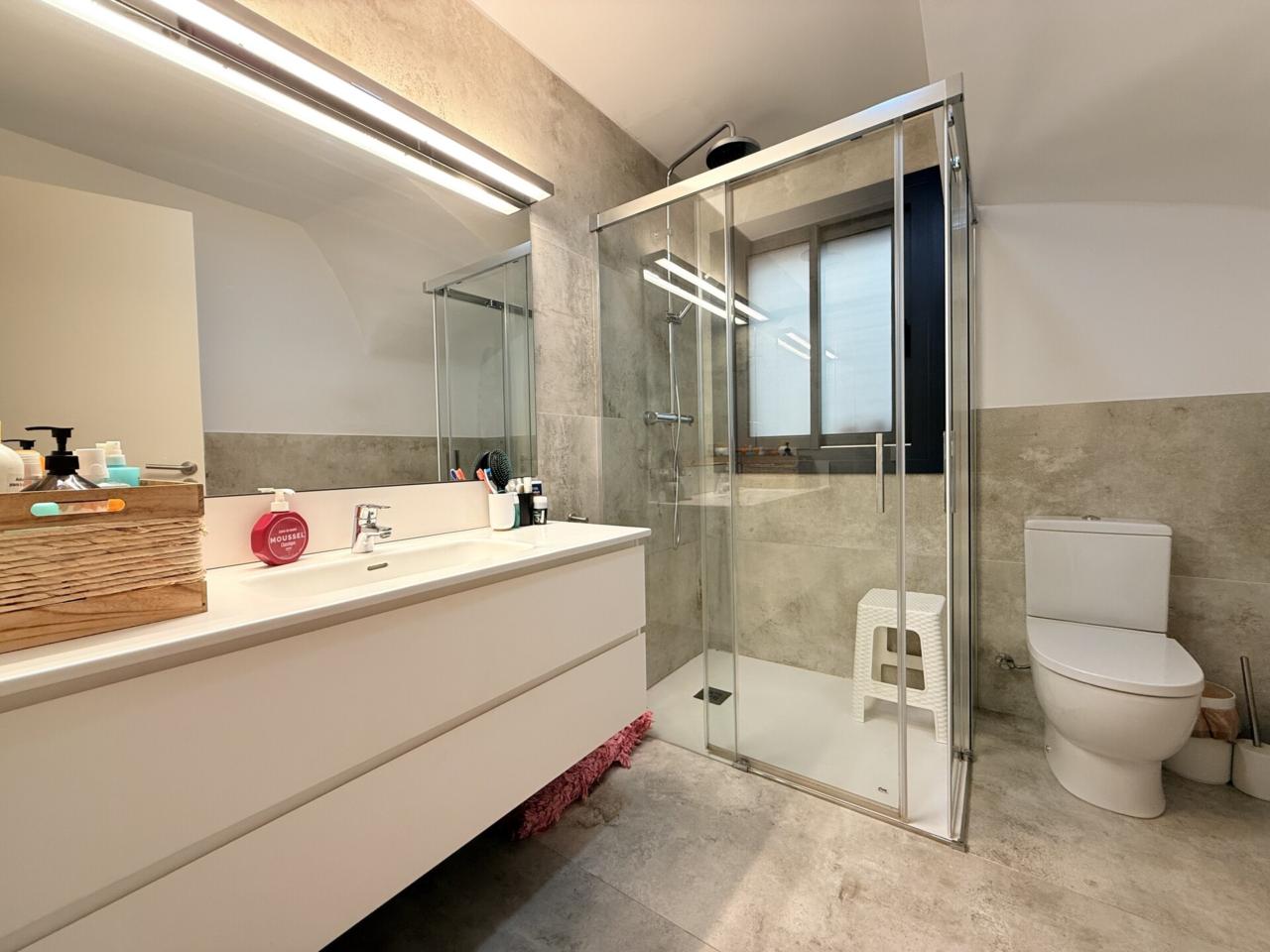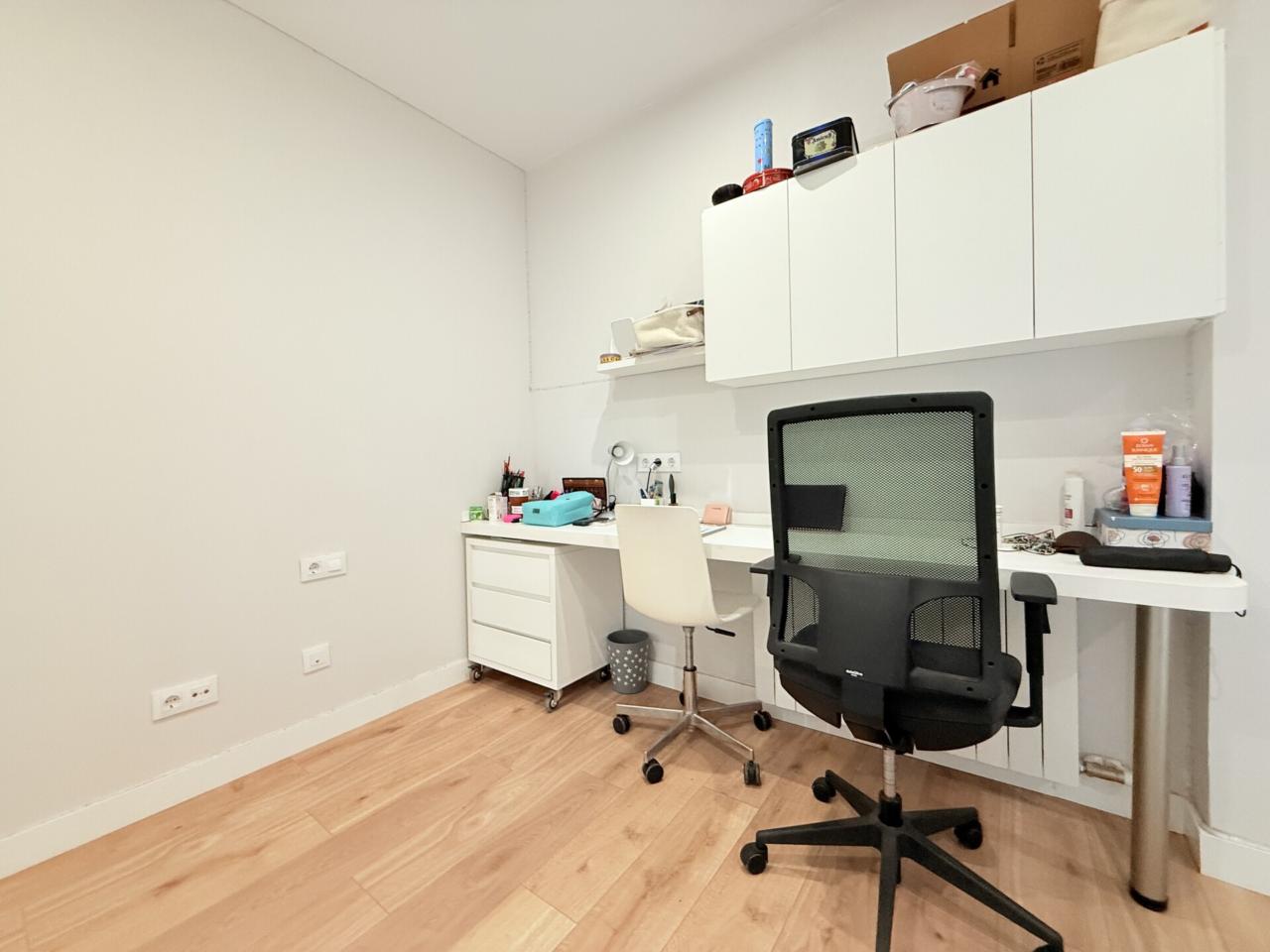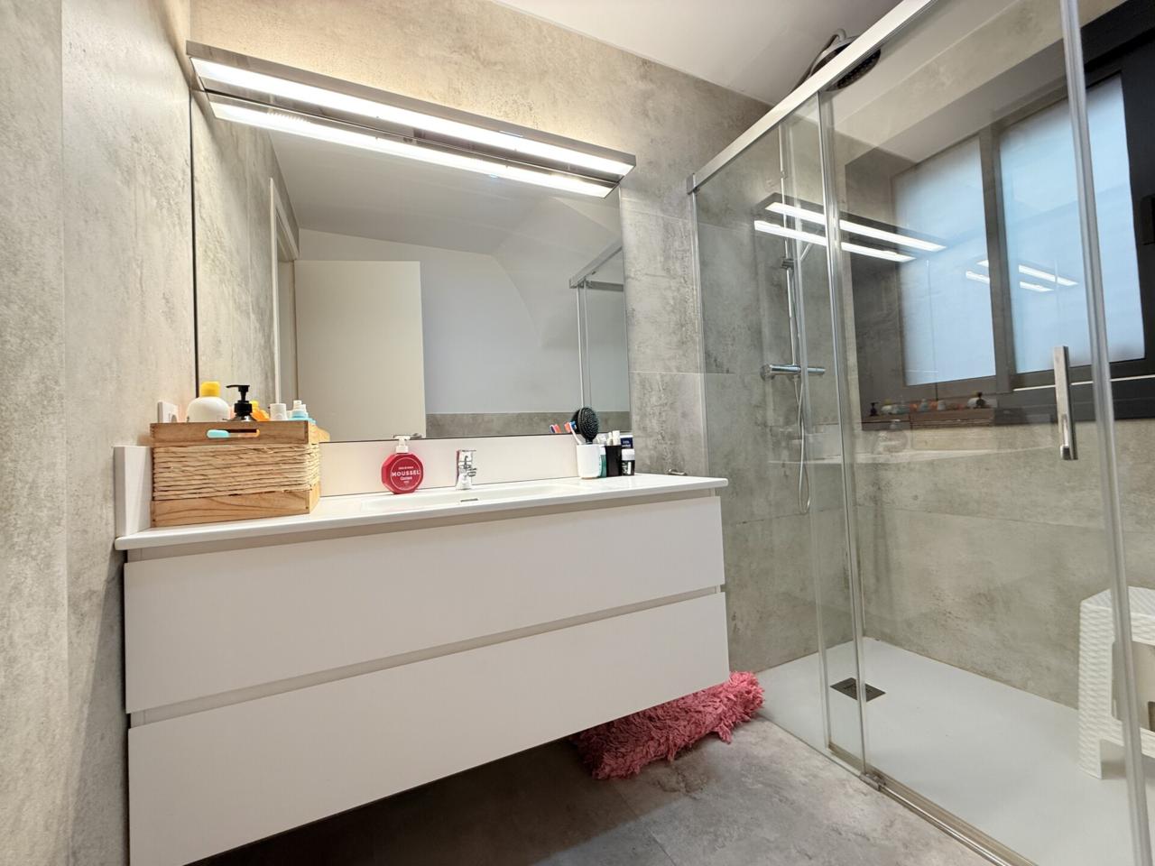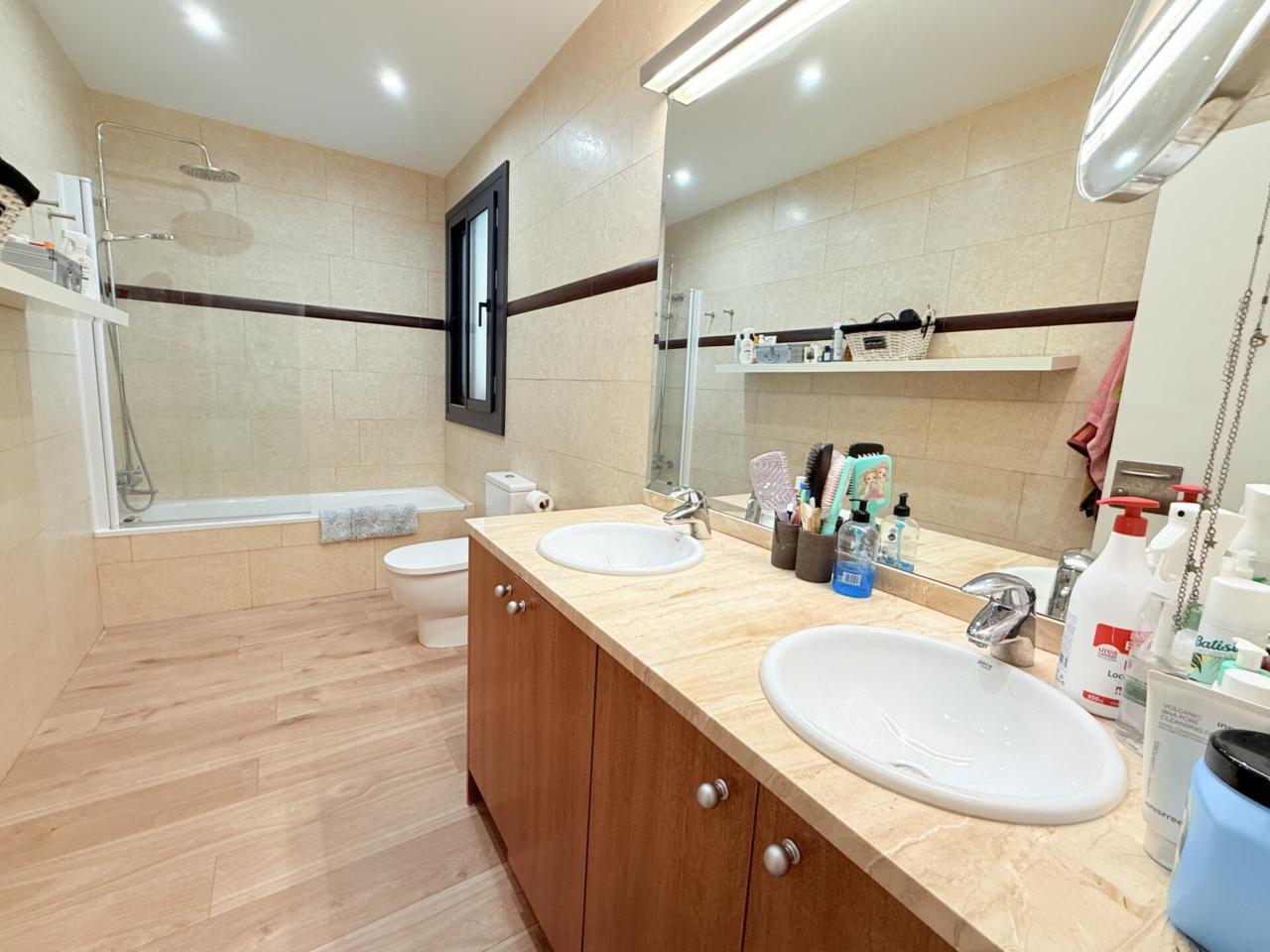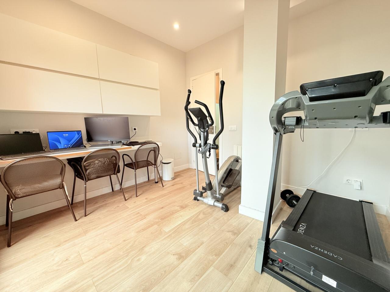 La propiedad dispone de tres habitaciones dobles, una de ellas con sala privada ideal para gimnasio, además de una habitación independiente destinada a lavandería. Cuenta con dos baños completos con platos de ducha muy amplios y un espectacular salón comedor con cocina abierta de diseño, reformada hace solo ocho meses, que aporta modernidad y una gran luminosidad a toda la vivienda. Los armarios hechos a medida maximizan el espacio y la gran terraza exterior ofrece un ambiente perfecto para disfrutar de las vistas y del aire libre. Destacan también sus nuevos cerramientos de PVC con ventanas oscilobatientes y persianas automatizadas, así como un parquet de altas prestaciones que aporta calidez, elegancia y un extra de confort en cada estancia. Para mayor comodidad, el dúplex está equipado con cinco aires acondicionados, calefacción con caldera de gas y plaza de parking para coche grande en la misma finca, un valor añadido muy difícil de encontrar en la zona.