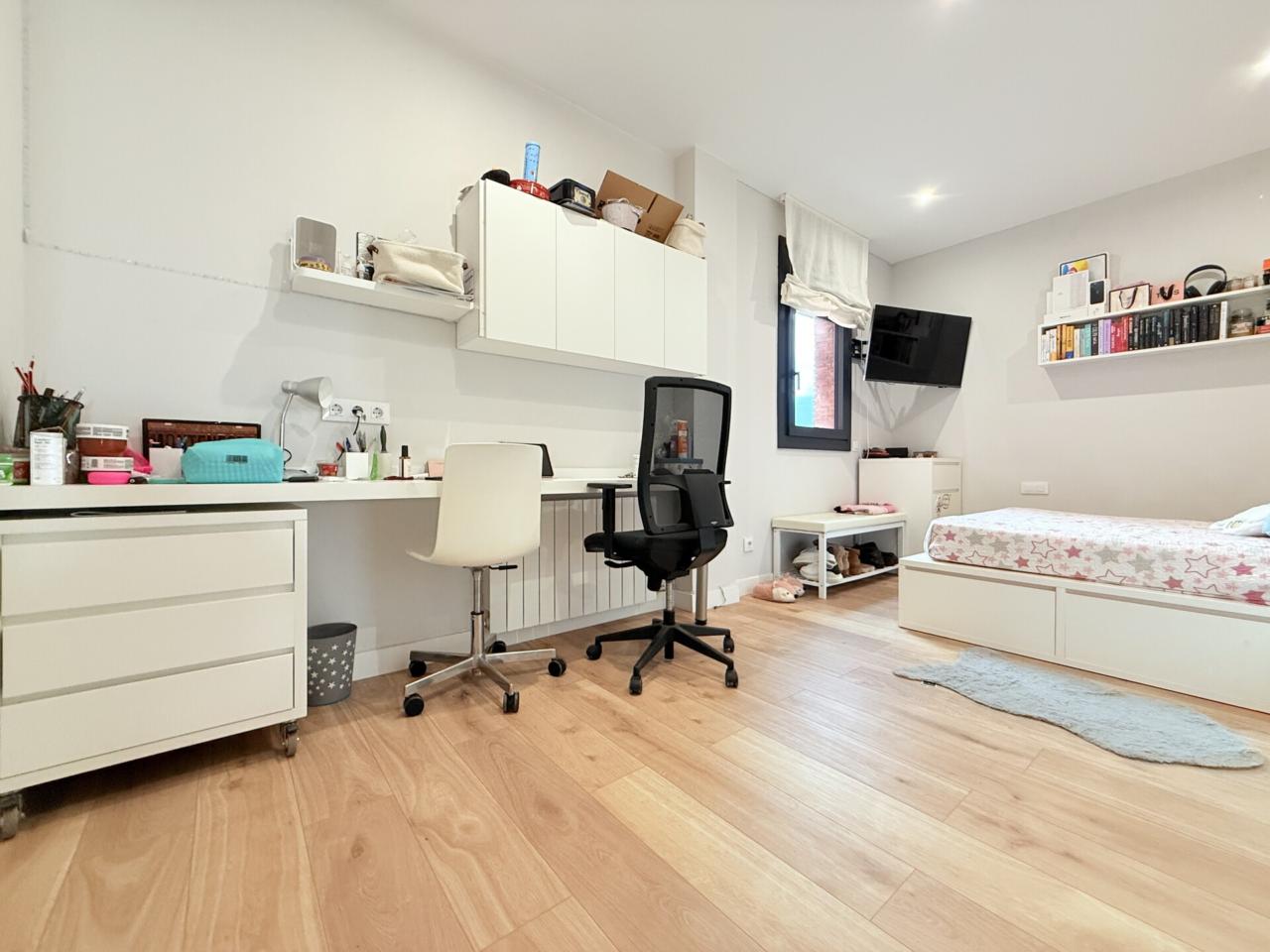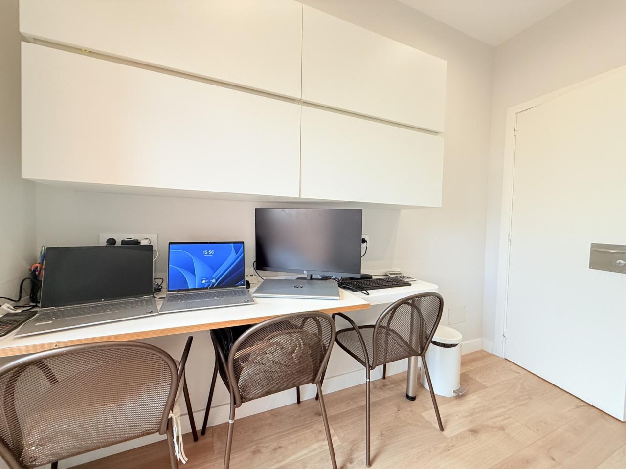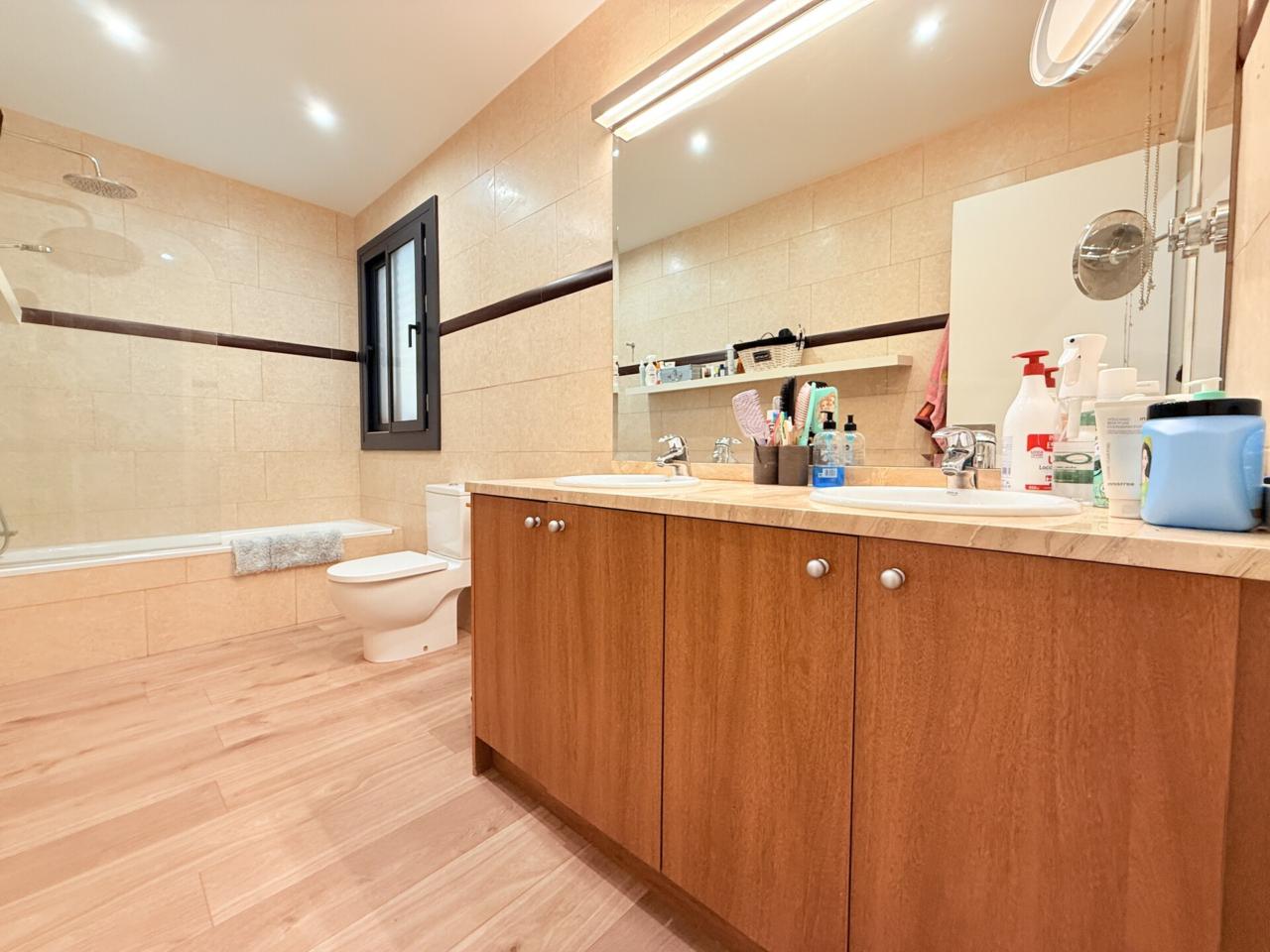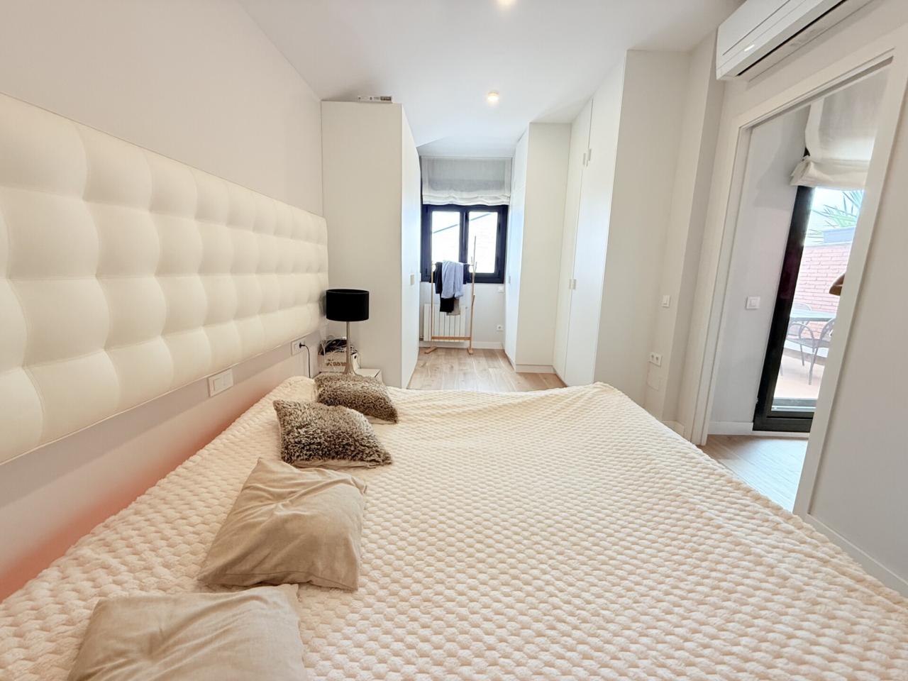 La propiedad dispone de tres habitaciones dobles, una de ellas con sala privada ideal para gimnasio, además de una habitación independiente destinada a lavandería. Cuenta con dos baños completos con platos de ducha muy amplios y un espectacular salón comedor con cocina abierta de diseño, reformada hace solo ocho meses, que aporta modernidad y una gran luminosidad a toda la vivienda. Los armarios hechos a medida maximizan el espacio y la gran terraza exterior ofrece un ambiente perfecto para disfrutar de las vistas y del aire libre. Destacan también sus nuevos cerramientos de PVC con ventanas oscilobatientes y persianas automatizadas, así como un parquet de altas prestaciones que aporta calidez, elegancia y un extra de confort en cada estancia. Para mayor comodidad, el dúplex está equipado con cinco aires acondicionados, calefacción con caldera de gas y plaza de parking para coche grande en la misma finca, un valor añadido muy difícil de encontrar en la zona.
