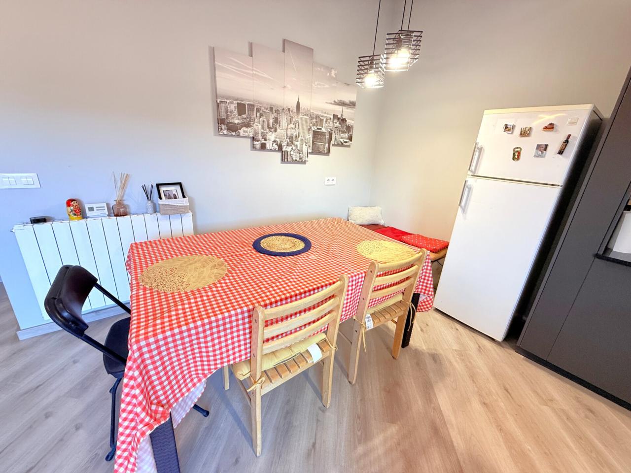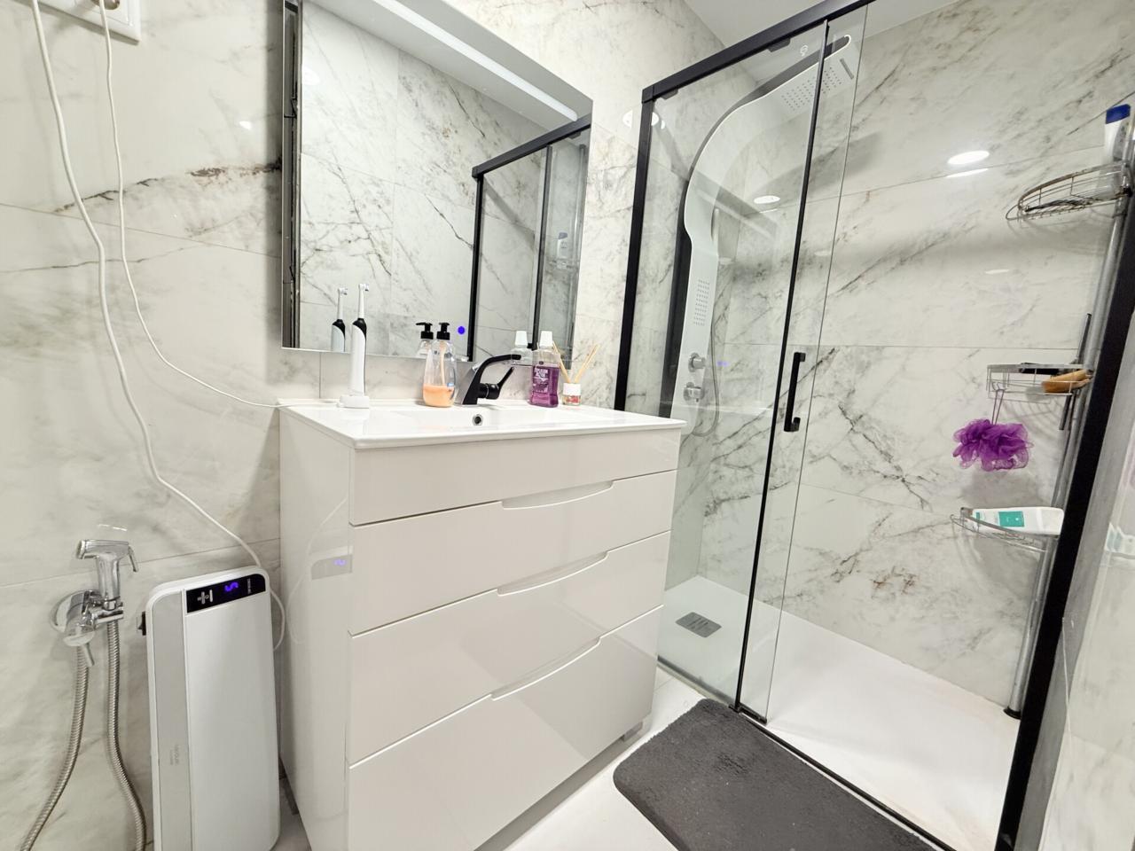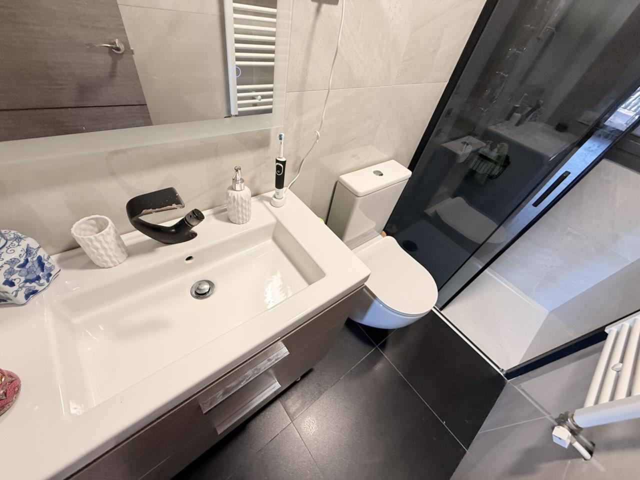 En la primera planta se distribuyen cinco habitaciones exteriores, dos de ellas con acceso directo a un balcón frontal que aporta luminosidad. La cocina integrada en el salón crea un ambiente práctico y acogedor, y los tres baños completos garantizan el confort del día a día. La vivienda cuenta con calefacción de gas y aire acondicionado para disfrutar de una temperatura ideal en cualquier época del año.