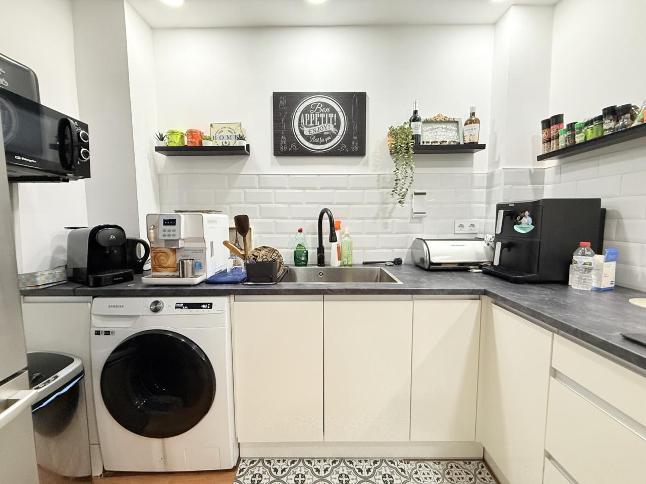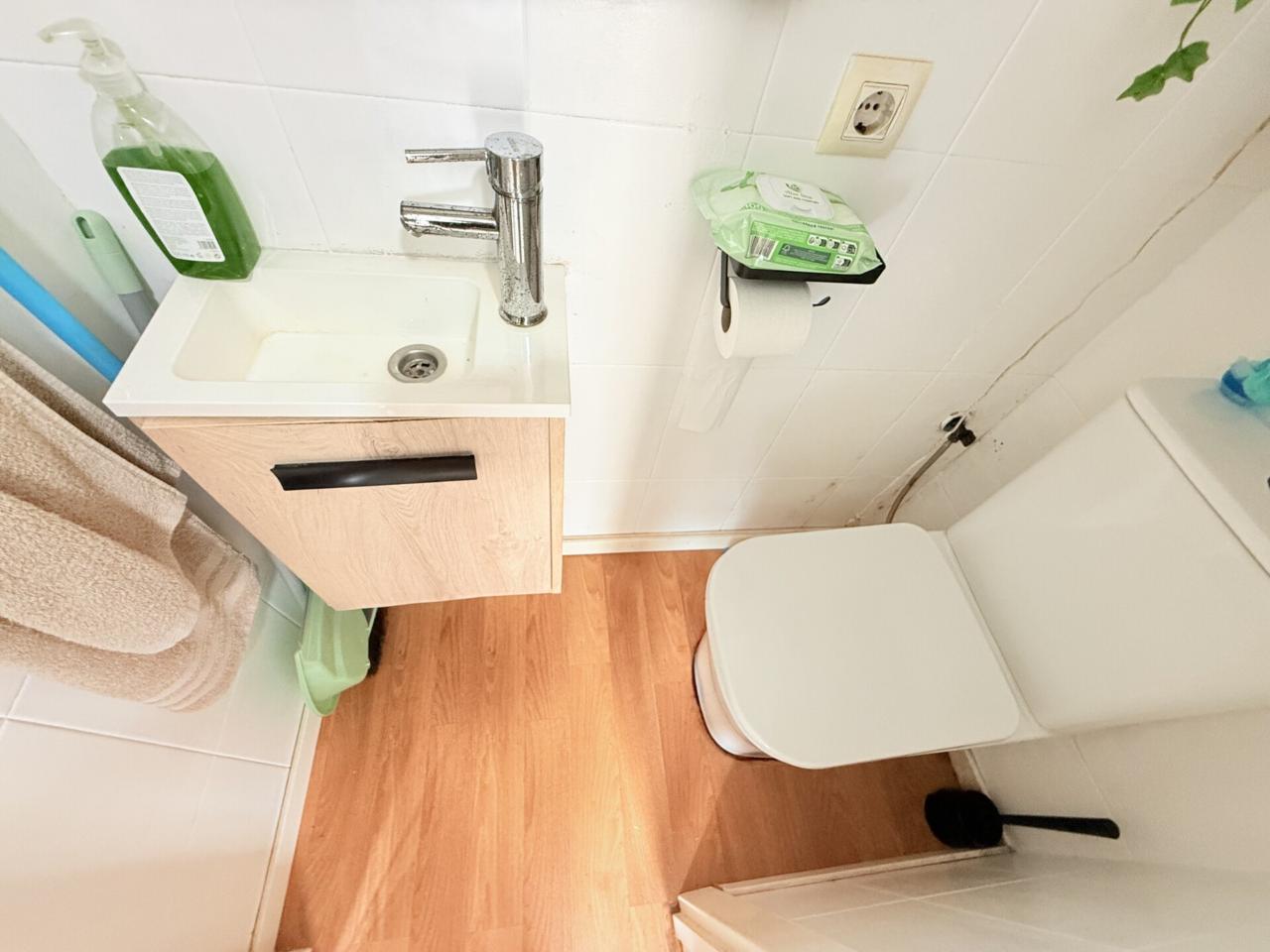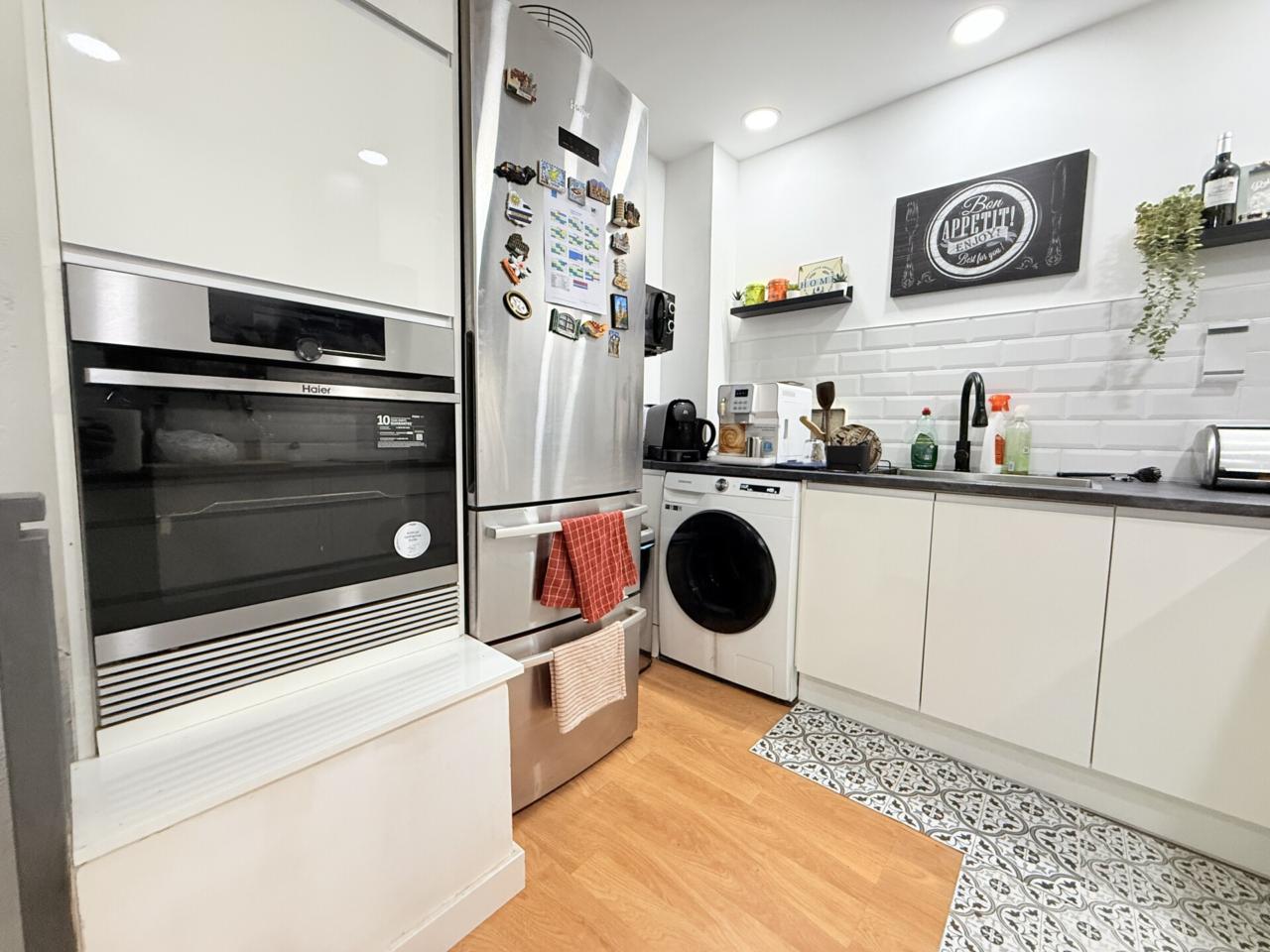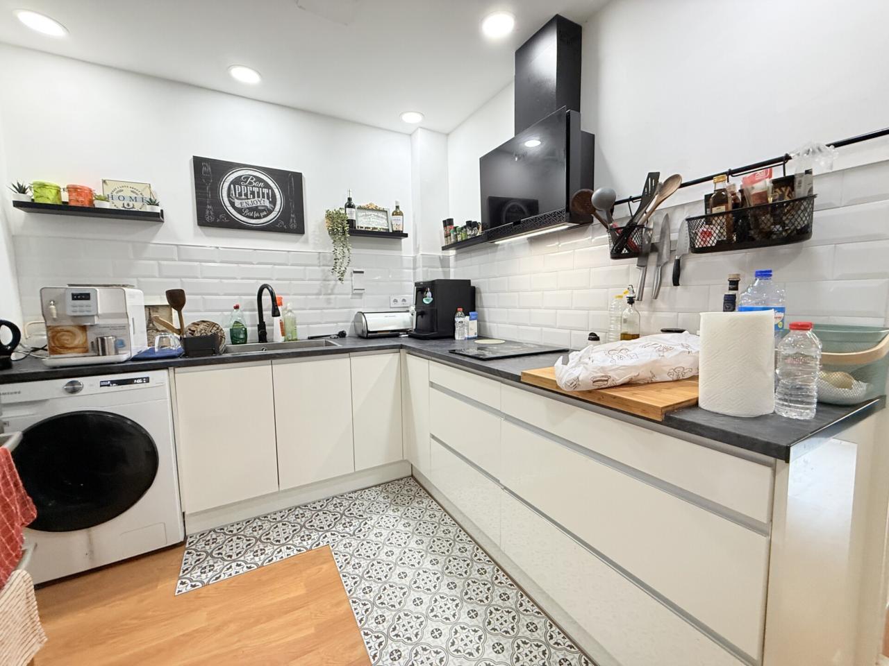 La vivienda se completa con un baño completo y un aseo, aportando mayor comodidad para toda la familia. El salón-comedor con cocina forma un ambiente acogedor y funcional, con una excelente entrada de luz natural que realza la sensación de amplitud y bienestar.
