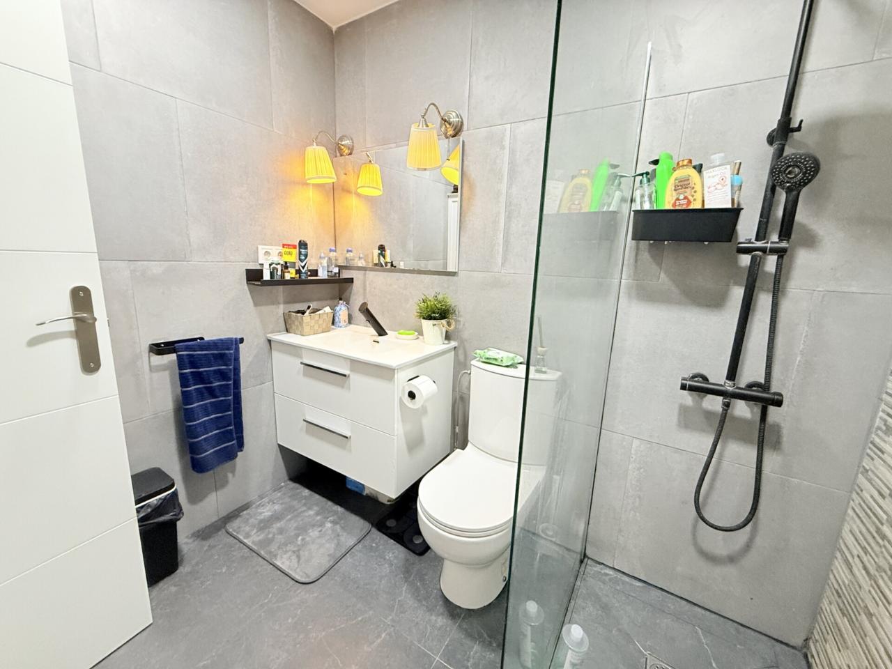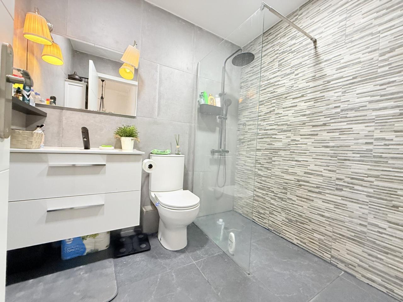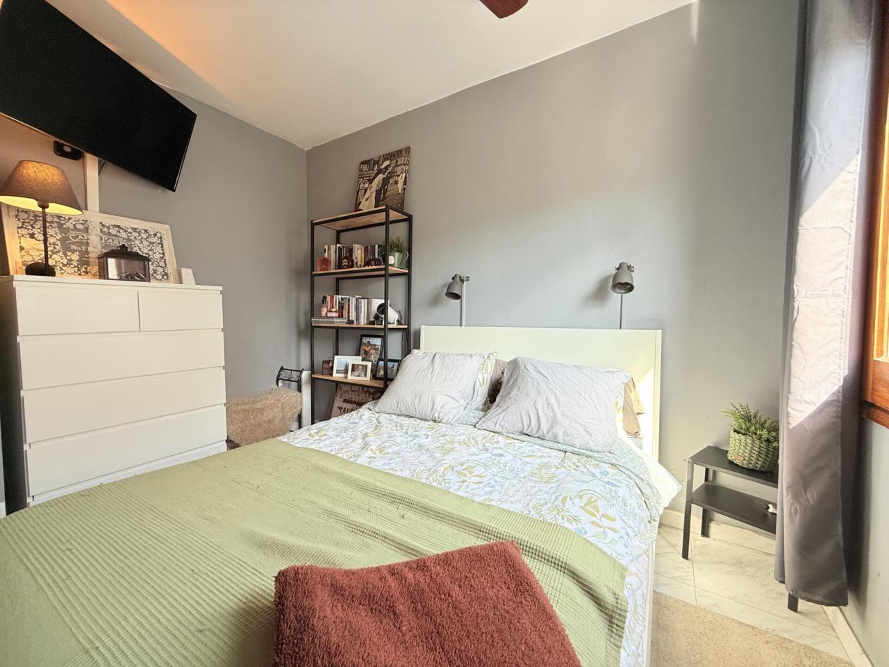 La propiedad cuenta con una distribución cómoda y funcional. Dispone de tres dormitorios, dos de ellos dobles —destacando la habitación principal con salida directa a una agradable terraza privada, perfecta para disfrutar de momentos de relax al aire libre— y un tercer dormitorio individual, ideal como despacho, habitación juvenil o espacio multifuncional.