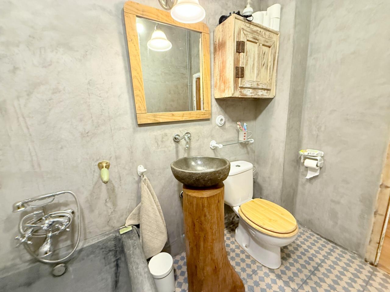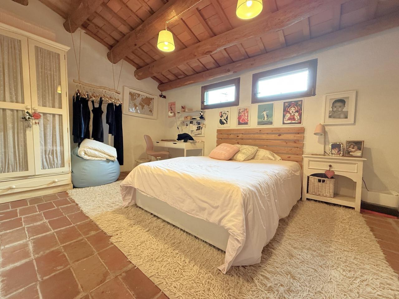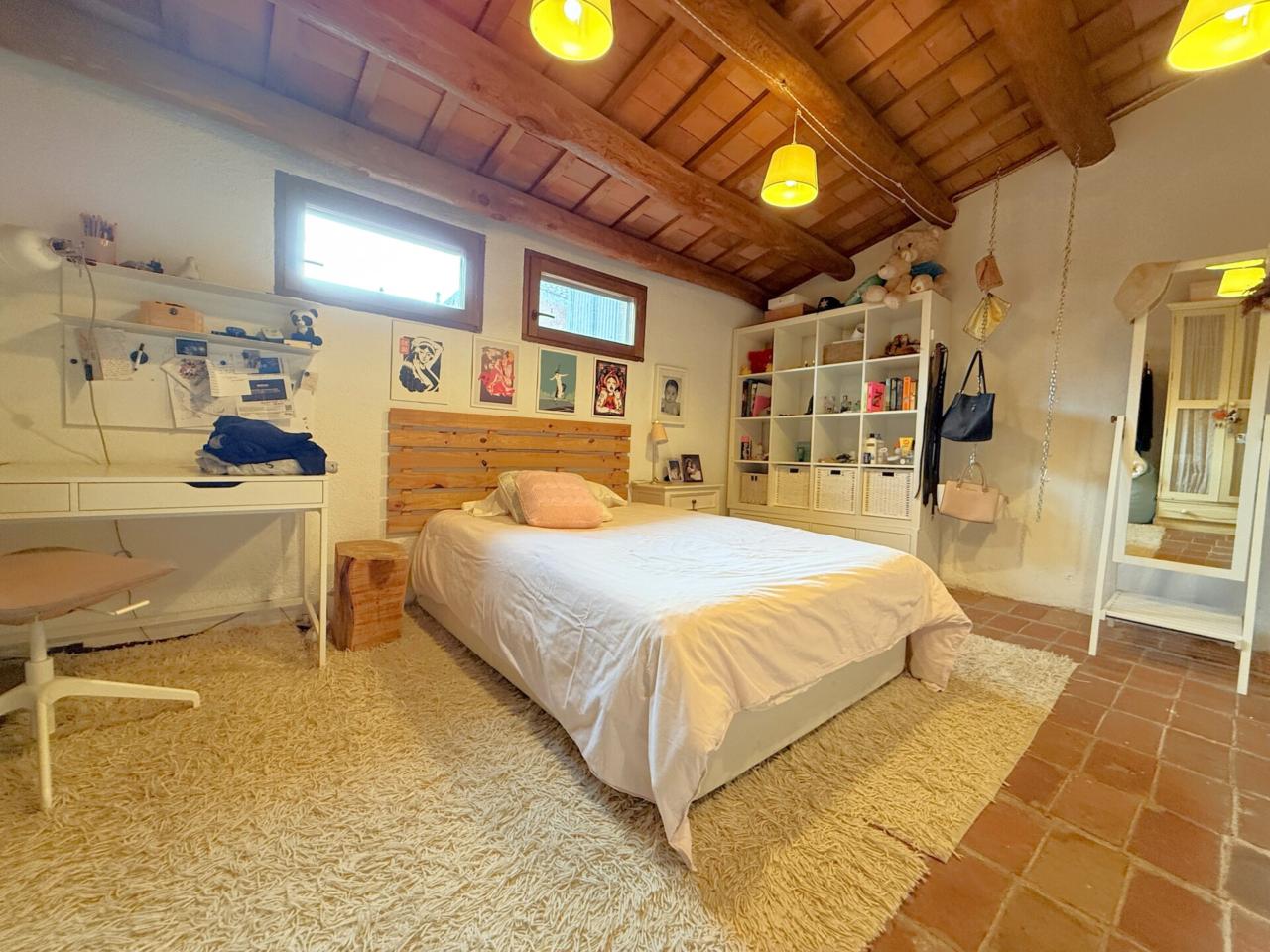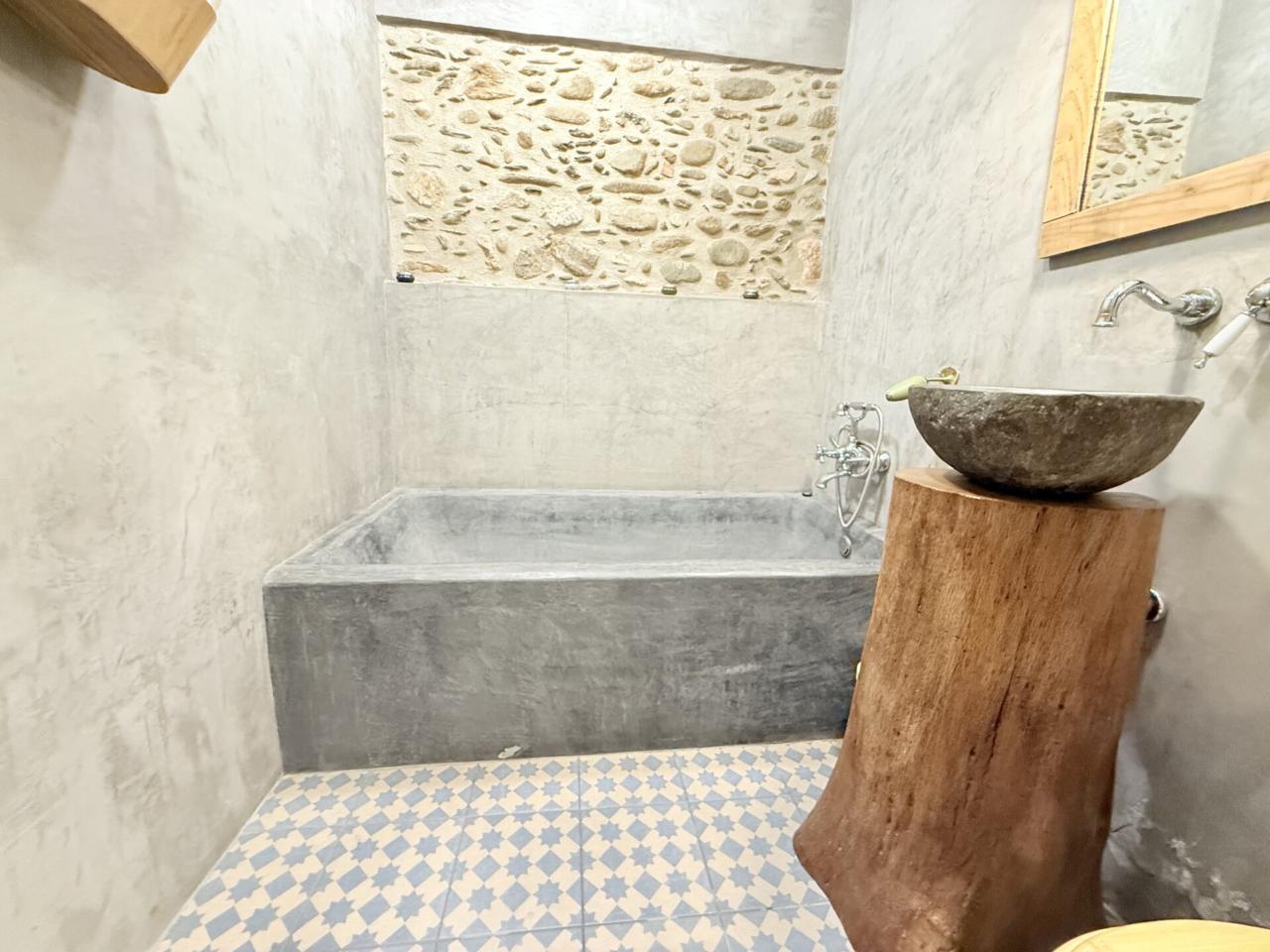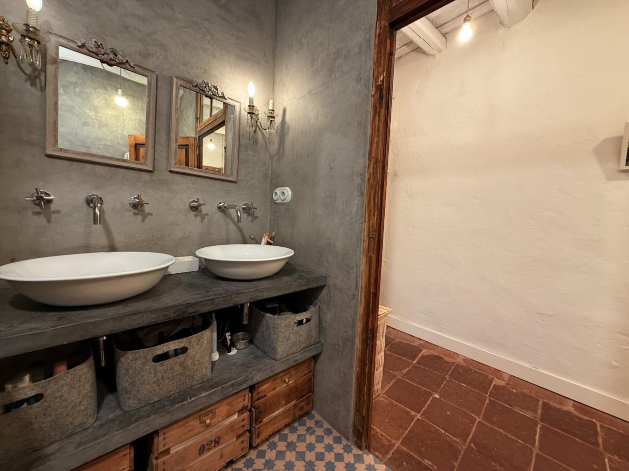 Al subir a la segunda planta desde el interior de la casa, descubrirás tres habitaciones dobles y un baño completo con ducha, todo con acabados en cemento impreso que aportan un estilo contemporáneo sin renunciar a la esencia rústica. Y en la planta superior, una espectacular habitación de más de 20 metros cuadrados te espera para que la uses como mejor te parezca.