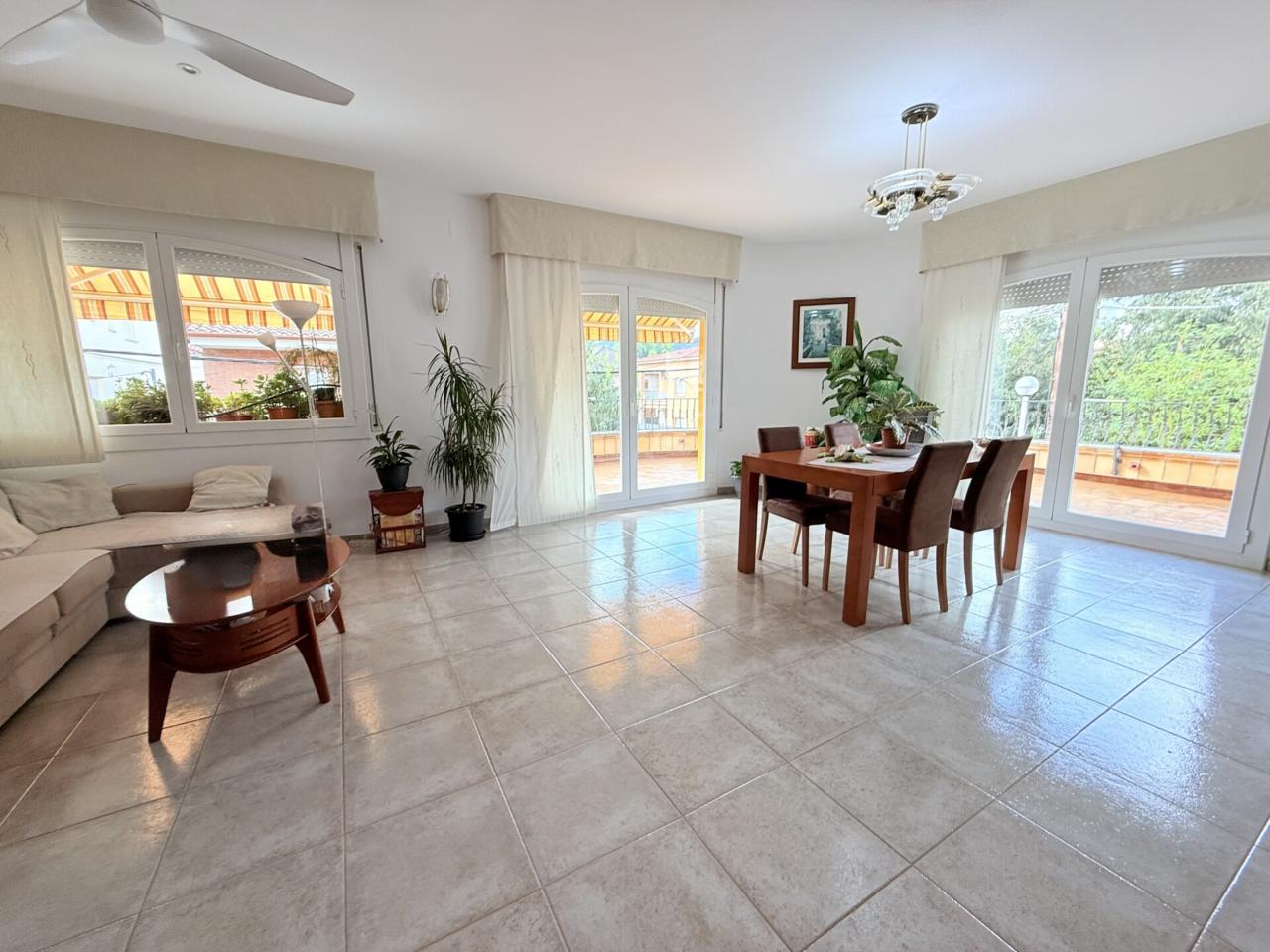 Características principales: • Cocina tipo office con salida a terraza. • Gran salón-comedor de más de 30 m² con ventanales y mucha luz natural. • 4 habitaciones (2 dobles y 2 individuales). • 2 baños completos en la planta principal. • Terraza de 35 m² con acceso desde el comedor. • Garaje de 85 m² en planta baja con capacidad para varios coches. • Zona exterior con barbacoa, ideal para reuniones familiares y con amigos. • La vivienda dispone de la mejor calefacción que puede tener una casa: suelo radiante, que aporta máximo confort y eficiencia energética.