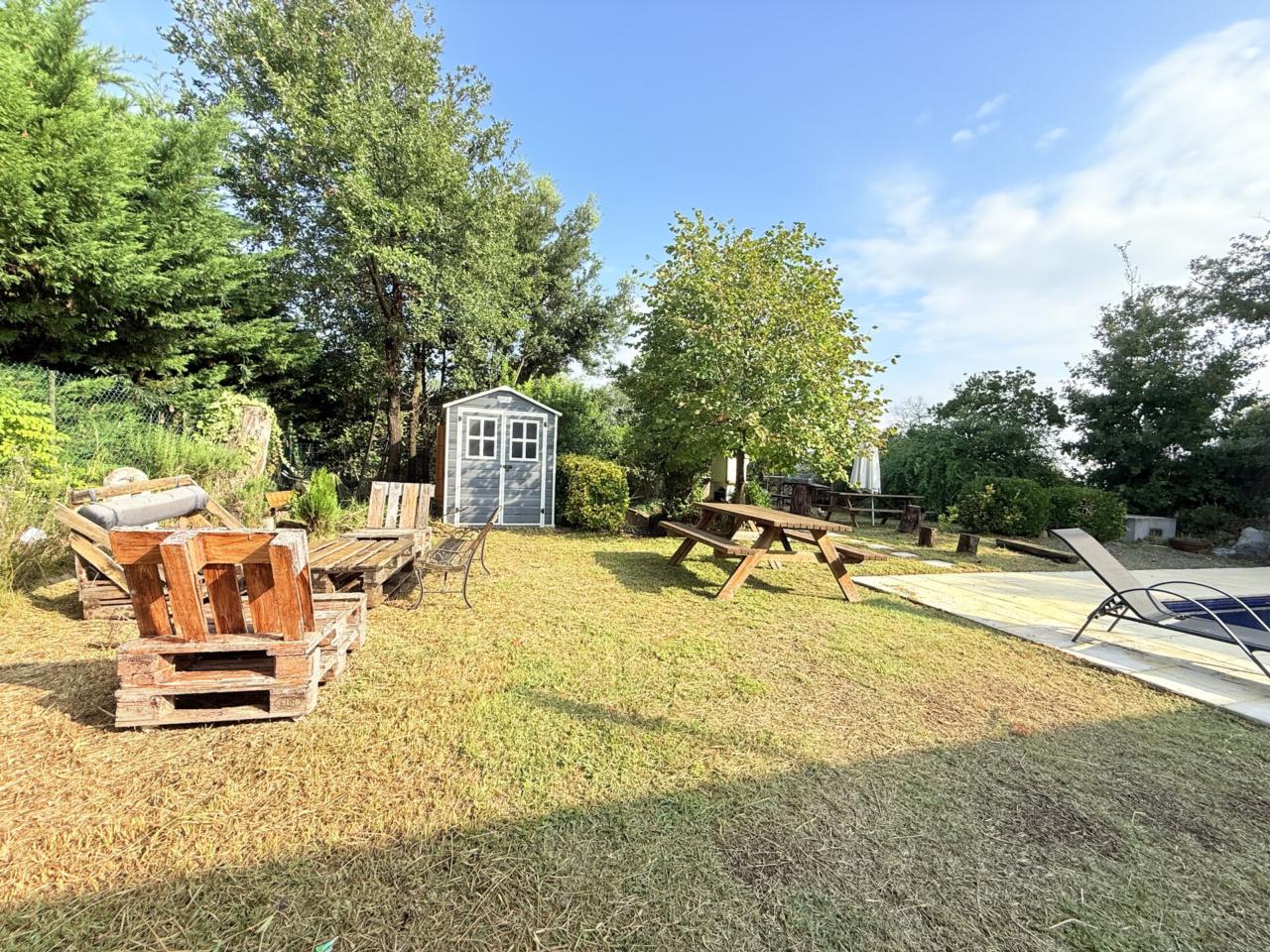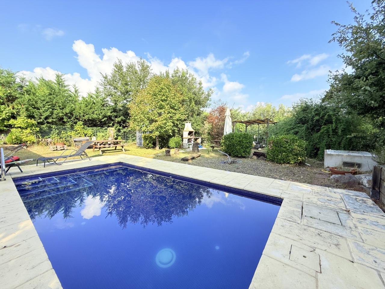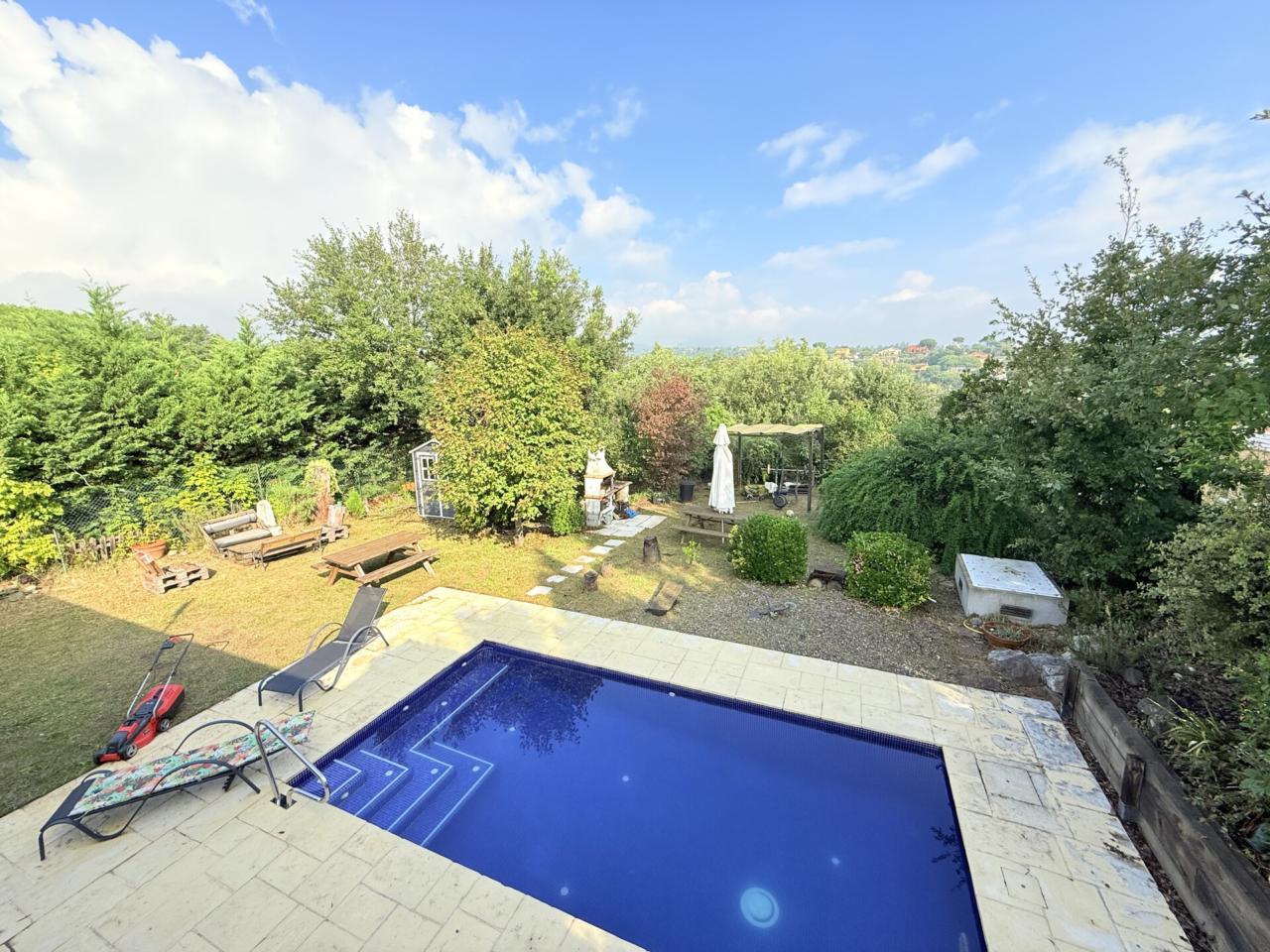 En el exterior, la propiedad cuenta con un jardín totalmente plano que rodea una espectacular piscina, creando un entorno perfecto para relajarse, disfrutar en familia o compartir momentos al aire libre.