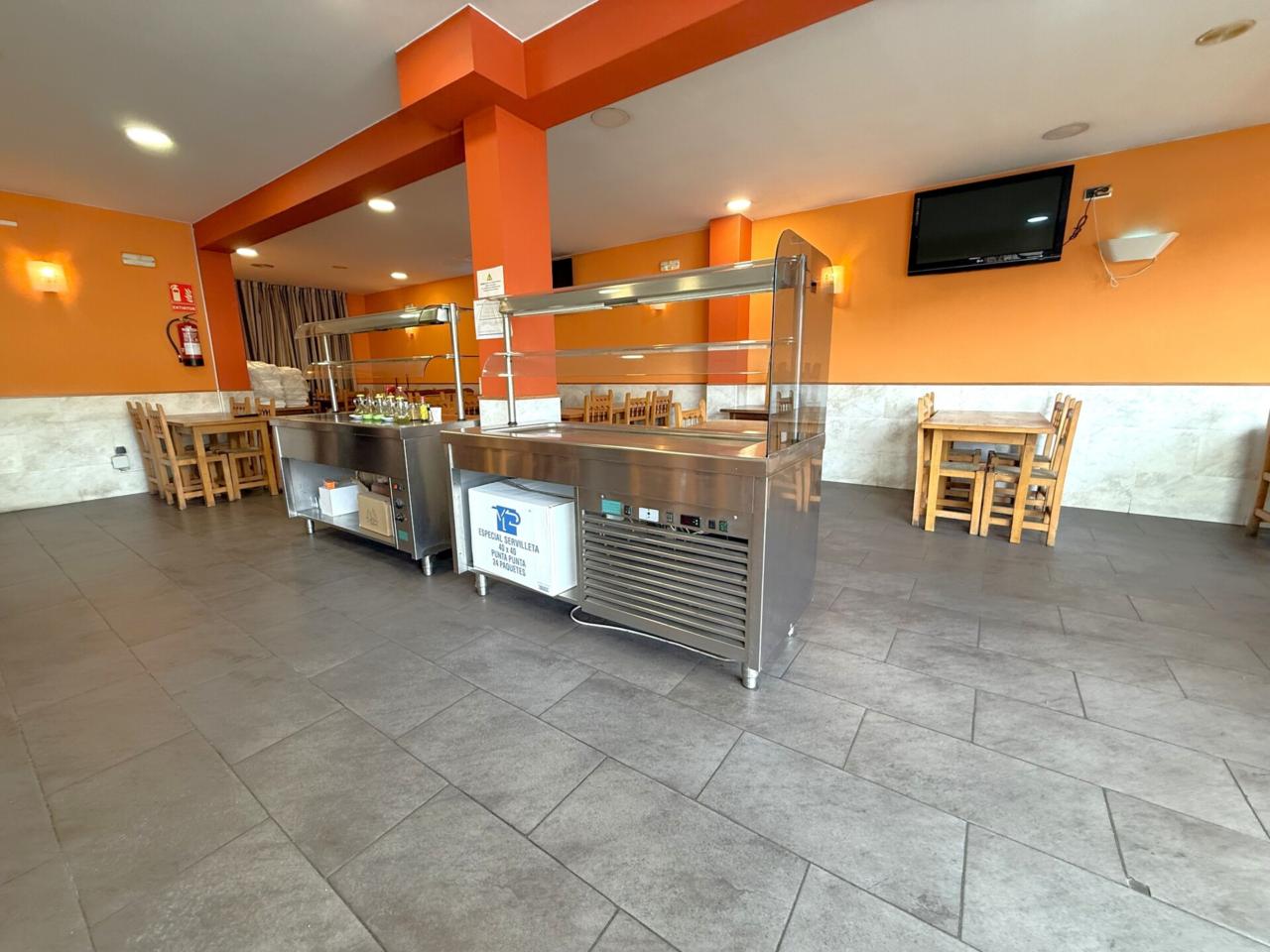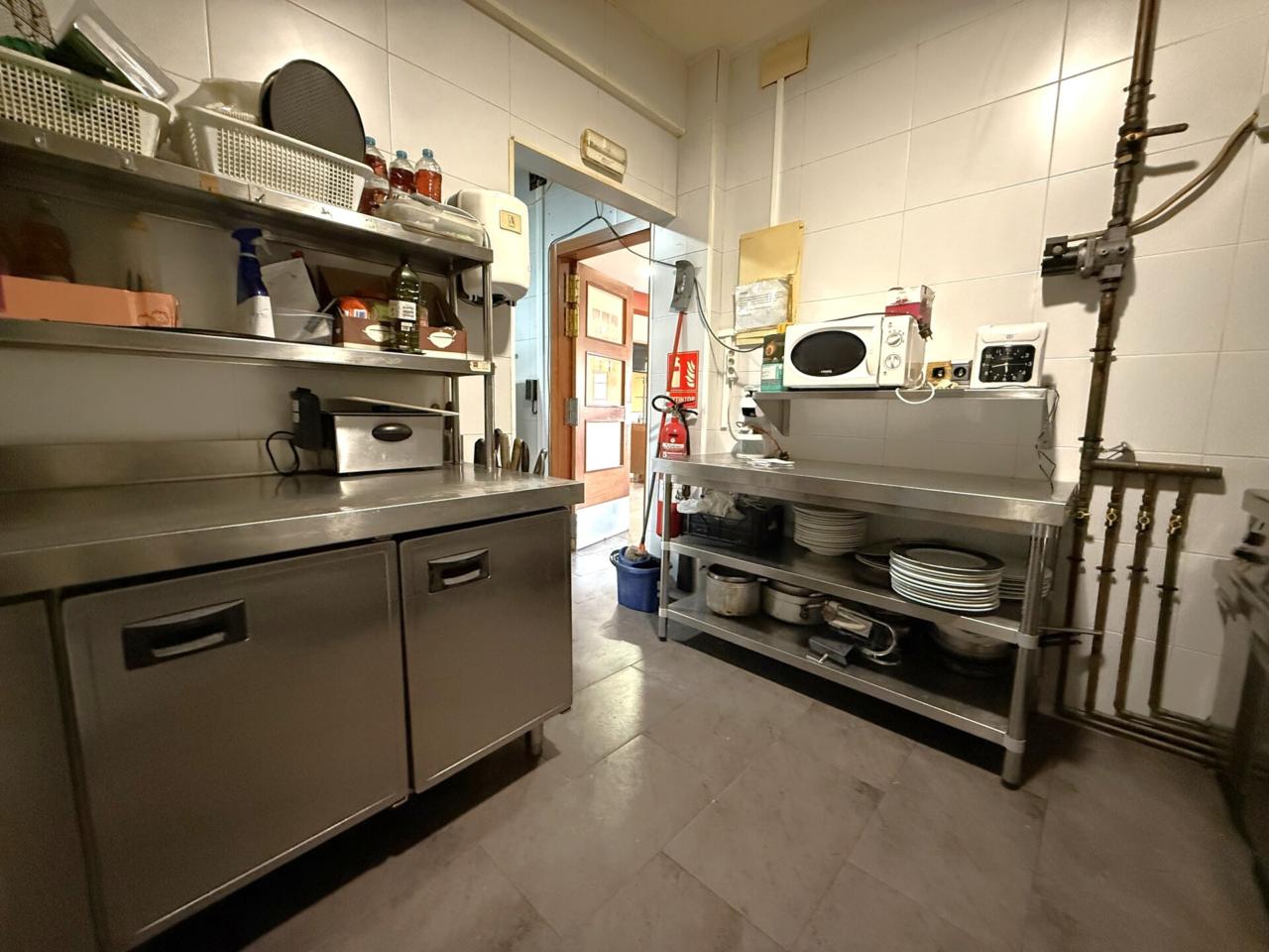 La planta principal, orientada a la actividad diaria, integra la recepción, un salón de restauración con capacidad aproximada para 50 clientes, aseos de uso común y una cocina industrial equipada al detalle para dar servicio al restaurante. A esta planta se suma un garaje con espacio para dos vehículos.